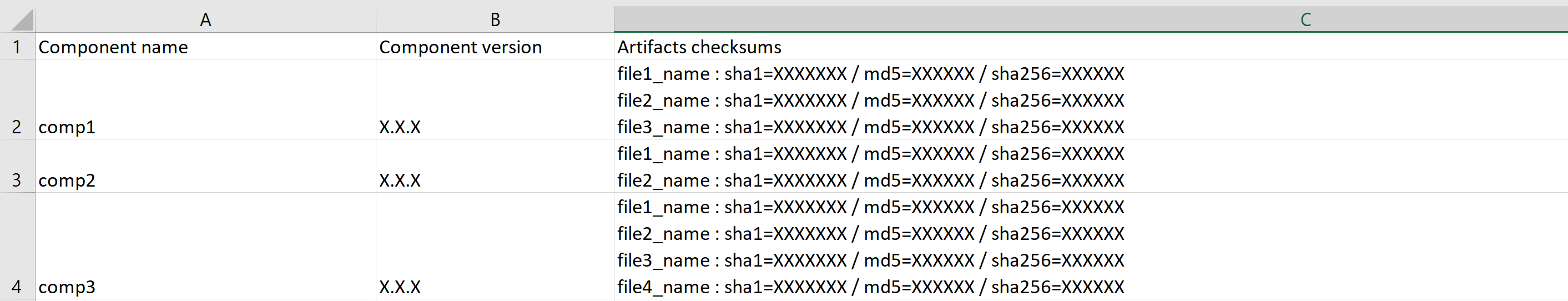 为此,我对每个组件进行了Artifactory,文件夹中的文件列表,以及每个组件的所有校验和: