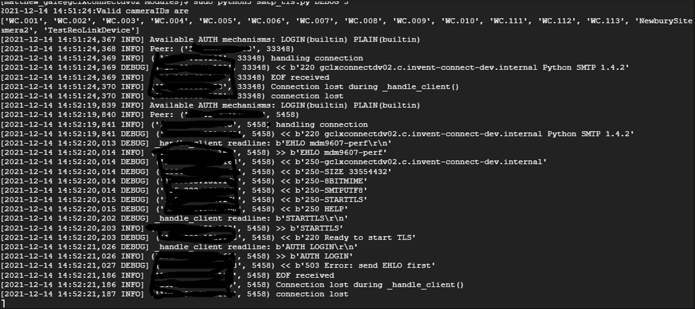 在建立TLS连接之后是否需要EHLO消息?我使用的是橡子ltl-6511M野生动物相机,它在建立TLS连接后似乎没有发送EHLO消息,导致基于aiosmtpd的SMTP服务器出现503个错误。不过,它适用于gmail SMTP。相机是否遵循协议,还是我的服务器不够健壮?