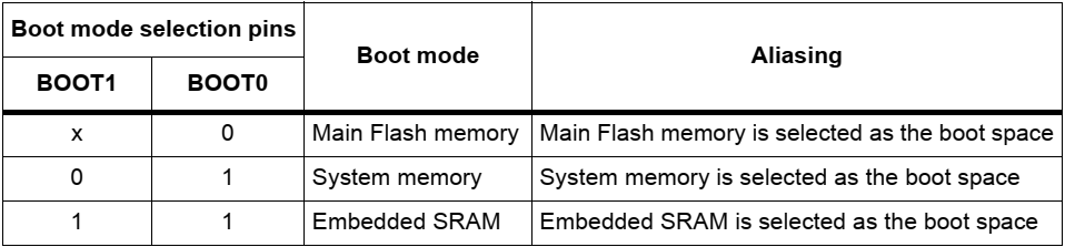 “系统内存”是指嵌入式引导程序,在本例中是DFU。你需要“主Flash”来运行你的应用程序。