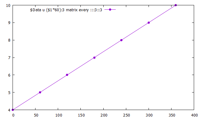 plot $Data u ($1*60):3 matrix every :::3::3 w lp pt 7