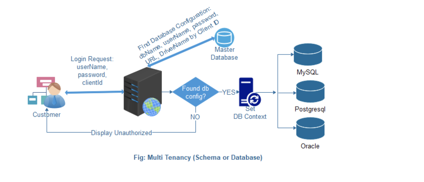 我目前正在开发一个多租户系统,我已经实现了混合流程,该流程允许每个客户同时使用单个数据库,并根据请求实现共享数据库,