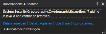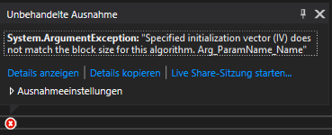 当我使用一个16字节的initvector时,我在这一行中得到了以下异常: