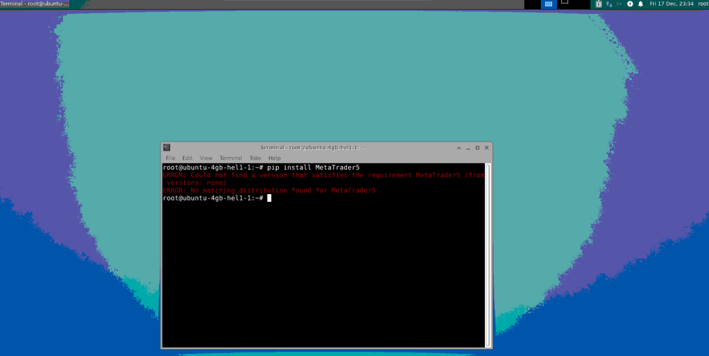 result = mt5.order_send(request)但出于某种原因,我现在只有一台Linux服务器。我安装MetaTrader 5的尝试完全失败(即使在尝试了Windows模拟器之后)。