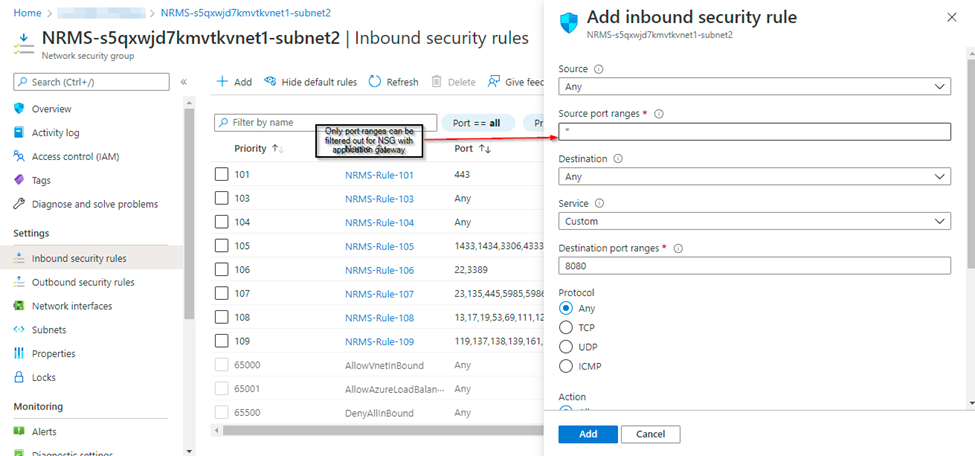 我需要将我的应用程序托管给有限的可信用户。我使用应用程序网关标准v2作为负载均衡器。我想提供对那些连接到我的vpn的应用程序网关的访问。我创建了网络安全组,并配置了入站规则以限制端口80的公共访问。此外,我还试图为特定用户打开端口80。但我无法将源ip地址范围配置为基于vpn用户的动态范围。
