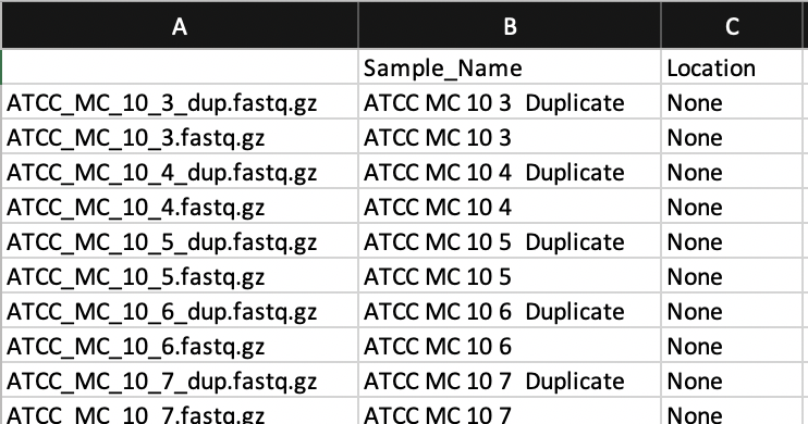 这是一个小小的改进,但是您可以将元数据映射与样本合并到phyloseq中。您可以在excel中创建元数据映射,其中文件的名称是第一列(第一列没有标签),与这些文件对应的示例名称是第二列(图中标记为Sample_Name的列)。如果愿意,可以在不同的列中添加有关示例的其他信息。然后将其保存为excel中的.txt文件。