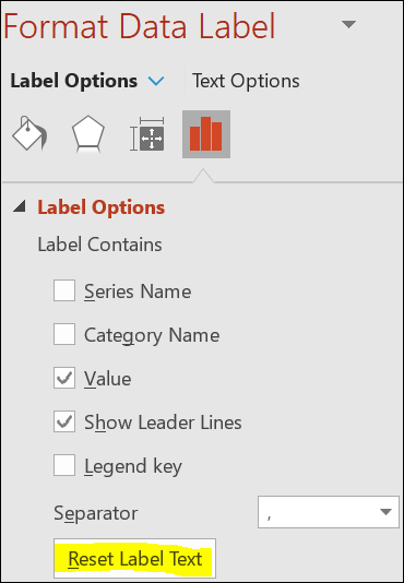 解决方法可能是使用Reset label Text (参见Pic -2),从而强制数据标签更新set属性。但我找不到与之相当的vba。帮助。