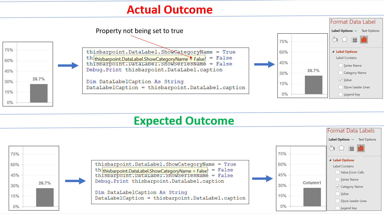 Debug.Print DataLabelCaption 'This gives the value as 26.7%PIC-1: