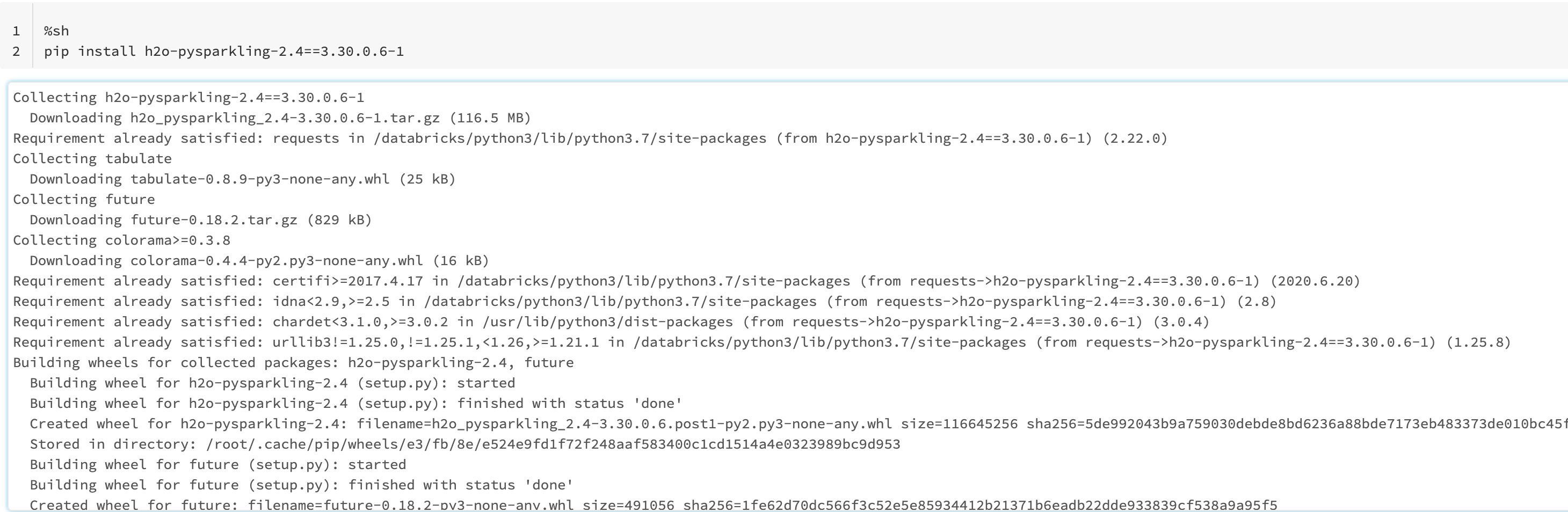 我已经安装了闪光水的版本,它对应于用于模型培训(3.0)的星火版本,h2o-pysparkling-3.0,它是我从PyPI中提取的。