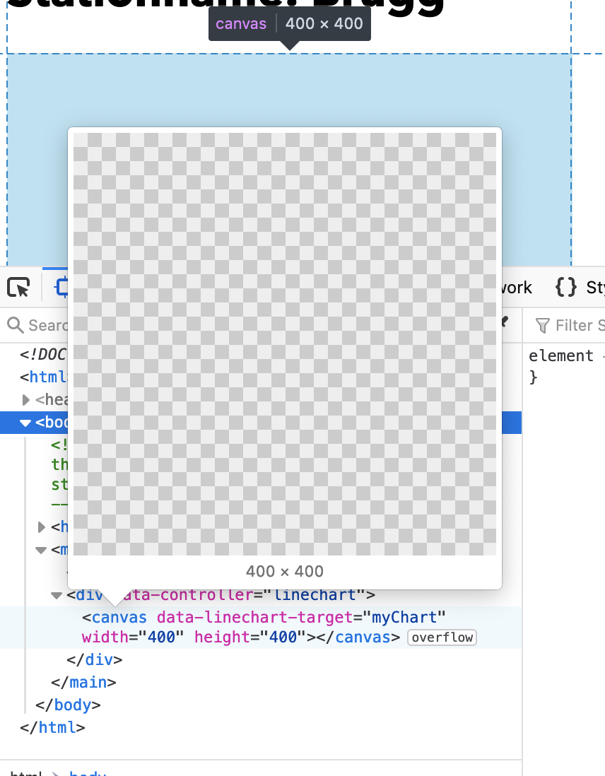 我想使用Chart.js在Rails中使用StimulusJS运行第一个示例。但出于某种原因,它只是呈现一个空画布(请参见[3.])。