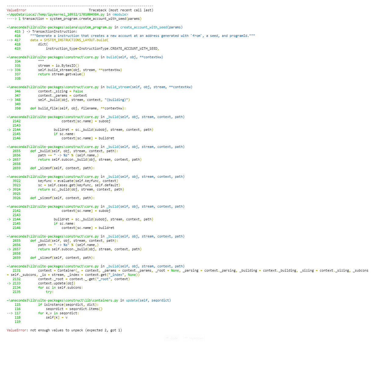 看起来,所提供的seed实际上应该是一个直接序列化到Rust字符串的dict。下面是一个这样做的测试:https://github.com/michaelhly/solana-py/blob/b507d4dfe16cdaccc754b1f2bac5ed9e258ea039/tests/unit/test_system_program.py#L64