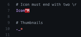 exclude: ^\.gitignore$或者更现实地说,只需删除Icon\r行,因为它不太可能被击中(只有当您为macos上的文件夹自定义图标时才会出现)。另一种选择是使用Icon? --它稍微不太精确,但很可能不太可能与其他东西相匹配