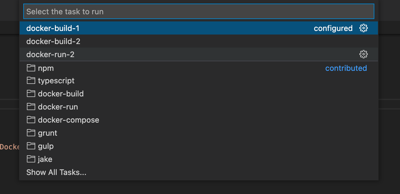 }当vscode显示用于运行任务的菜单时,只有thask docker-run-2显示: