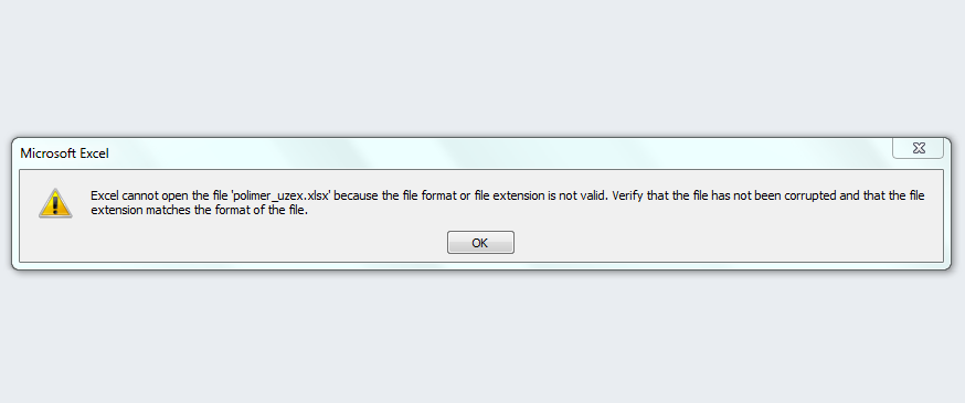 $objWriter->save("polimer_uzex.xlsx");保存后,我得到以下错误(“Excel无法打开文件,因为文件格式或文件扩展名无效. ")