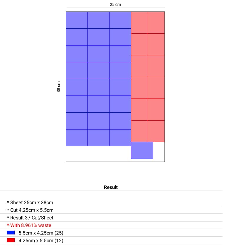 上述公式仍然不是最优的。如果使用上述配方,最多只会产生32张剪纸。我想要像下面这样。