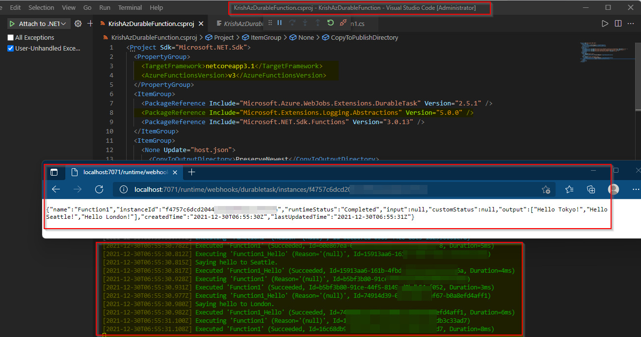 我知道,我提供的示例不包括持久函数,但它会复制问题,即使您向项目添加了持久函数,或者用接受注入ILogger的持久函数替换当前函数,它也会重现。