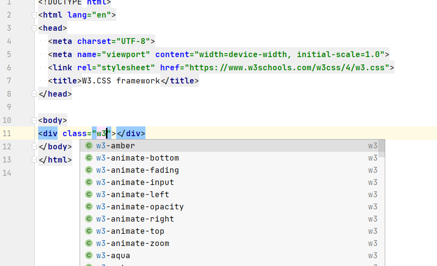 我使用的是来自https://www.w3schools.com/w3css/default.asp的w3.css框架,它是Bootstrap的替代方案。IntelliJ idea没有显示此框架的代码完成情况。