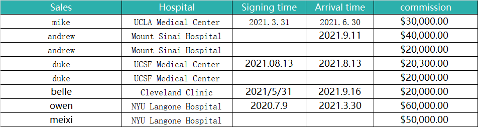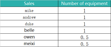 我想计算销售人员卖给医院的设备数量。