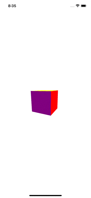}然后在自定义SCNScene中使用这一点,它将BoxNode添加为根节点,并设置旋转动画并将多维数据集枢轴化。
