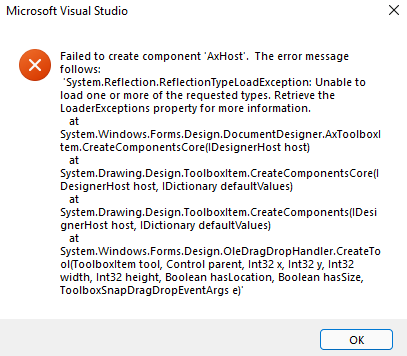 我正在Visual 2022上创建一个Windows窗体应用程序。当我将导入到我的项目时,它将显示此错误。