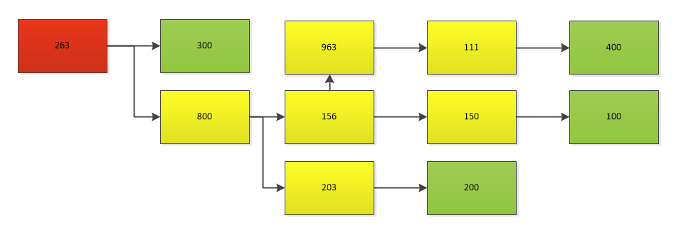 4: D4B 400, 111, 963, 156, 800, 263或者一句话:对于df1中的每个调制解调器(df1)取top值,在df2.a中搜索其目标(df.b),然后取这个目标值,存储它,如果它存在于df2.a中,则用于搜索。如果是,再取目标(df.b)并重复。只要它不再找到任何目标值。从来没有超过一个目标点,所以不需要处理多个目标点的案件。