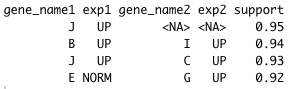 gene_name1 exp1 gene_name2 exp2 support