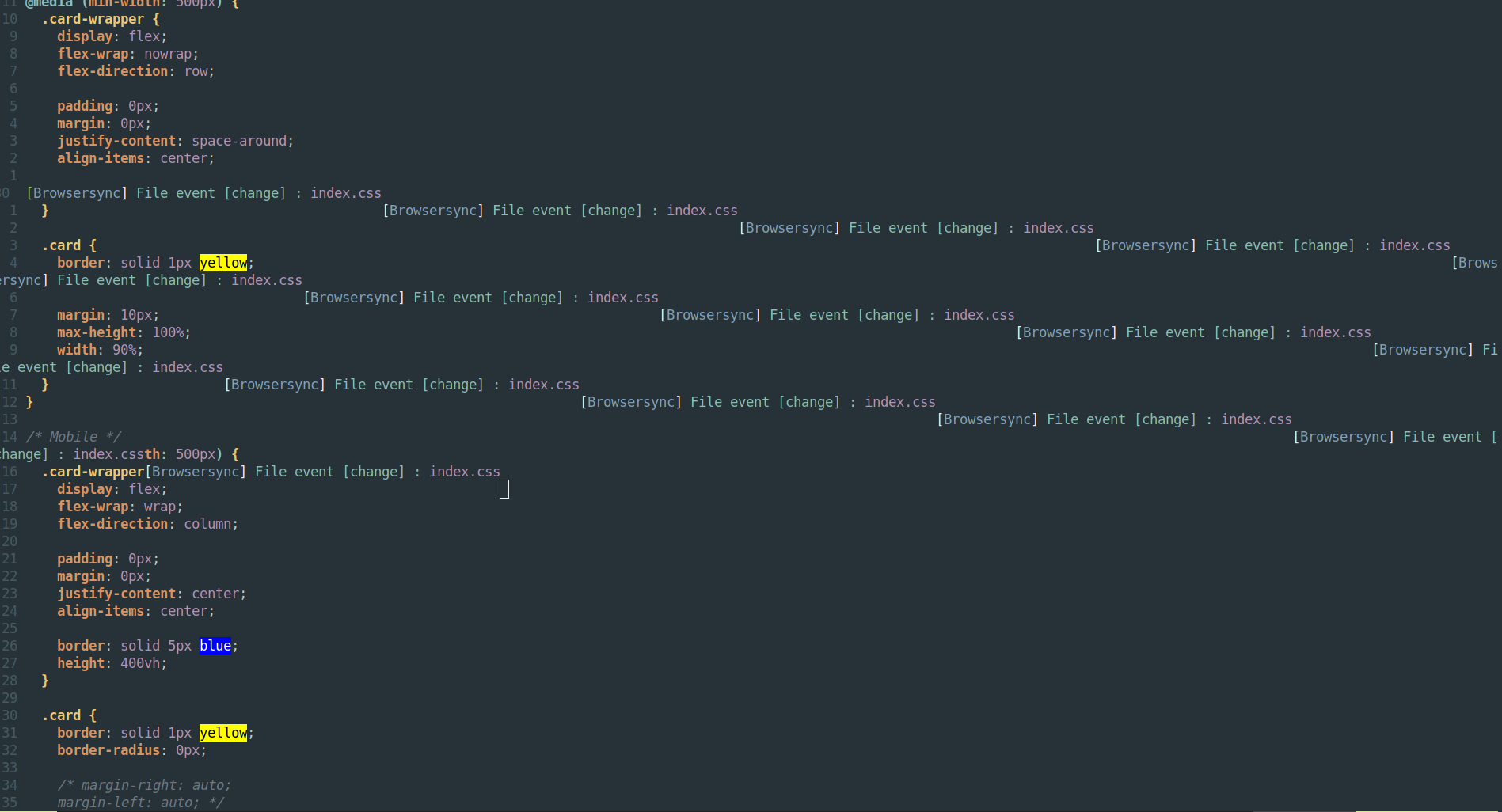browser-sync --logLevel silent start --server --files index.css正在运行在我的vim中的后台结果,从如下所示: