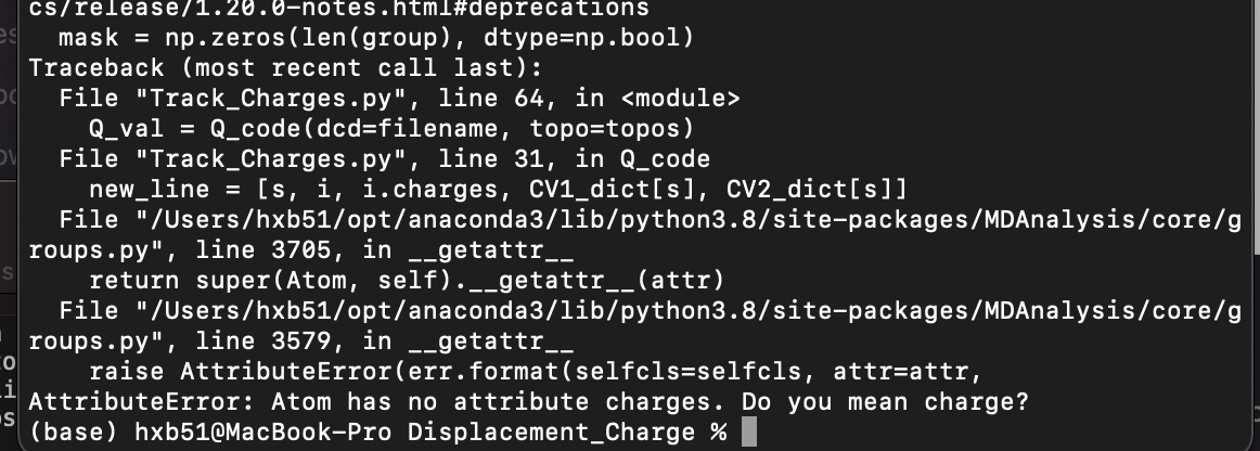 我一直试图找出这个过程,这是非常依赖于指控。然而,我发现,对于水,我得到一个不等于水分子电荷之和的值。为了研究这个问题,我想比较一下MDAnalysis和我的拓扑文件所使用的费用的值,看看问题在哪里。