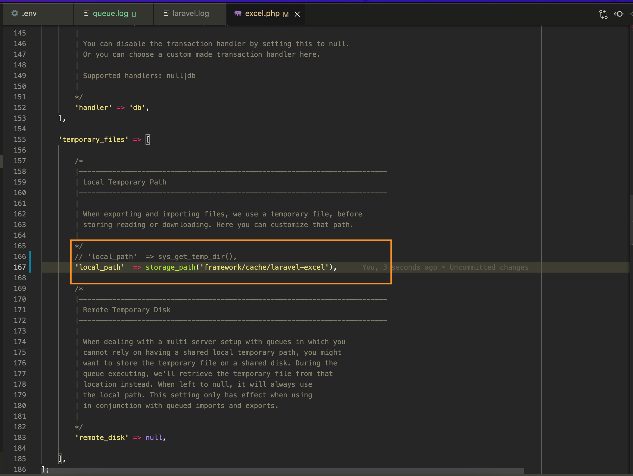'temp_path' => storage_path('framework/cache/laravel-excel'),