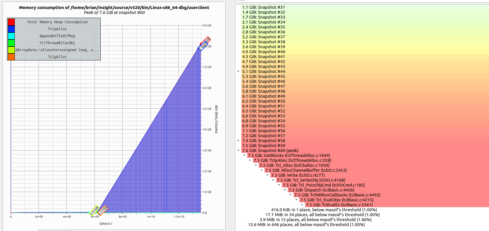 问题是,我们无法控制用户代码,在其中一种情况下,他们正在做一个导致内存爆炸和应用程序崩溃的放置操作。我可以通过将stdout重定向到/dev/null来防止这种情况,这使我相信Tcl的内部缓冲区不能被足够快地清空,所以它一直在缓冲。堆分析似乎证实了这一点。