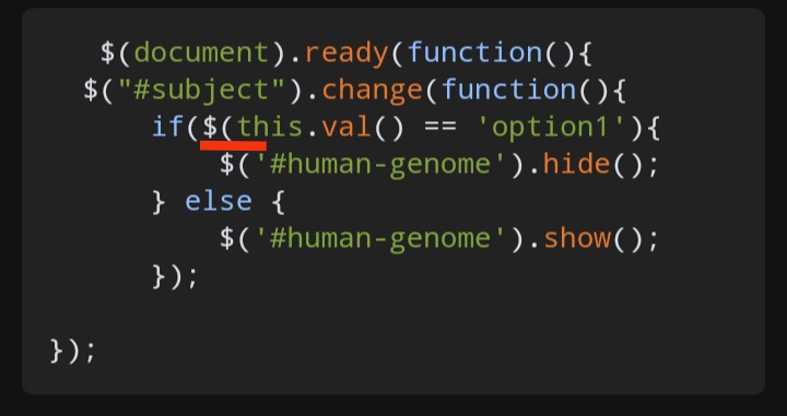 <div id="human-genome"></div>默认情况下,我希望隐藏此id,并在选择选项1时进行隐藏。当选项2被选中时,我想显示这个id。
