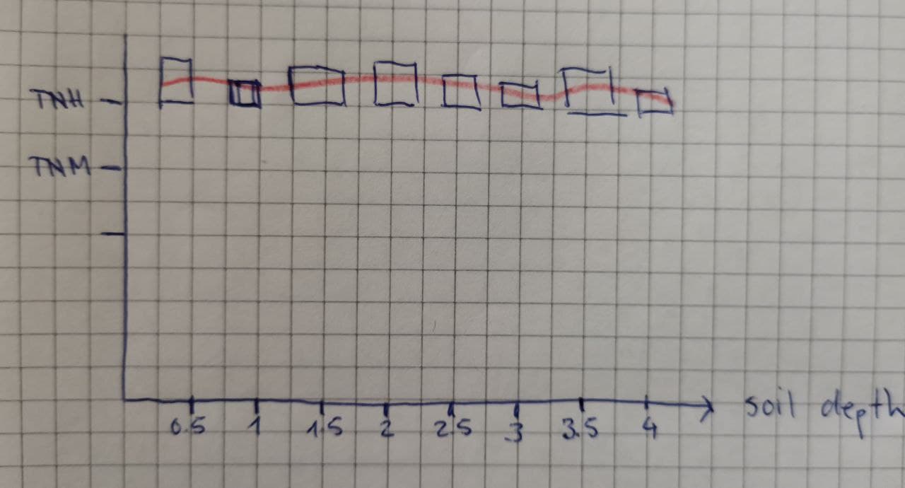 X轴表示土壤深度。对于每个土壤深度级别,我想用一个小节来表示平均活动值( bar越高,平均值越高)。理想情况下,我想添加一个平滑的显示沿土壤深度(x轴)的方法的过程。或者(但可能更复杂一些)来说明高值的条子,例如绿色的,红色的低值的条子--即使用颜色梯度来填充条子,以便更容易发现具有较高平均活度的土壤深度。