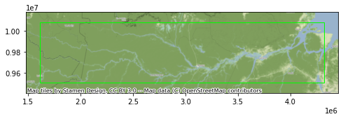 ax = gdf.plot(figsize=(8,3), facecolor='none', edgecolor='lime')