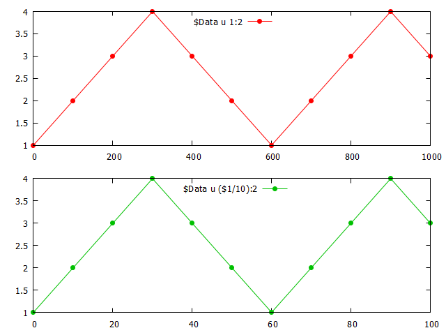 plot $Data u ($1/10):2 w lp pt 7 lc "web-green"