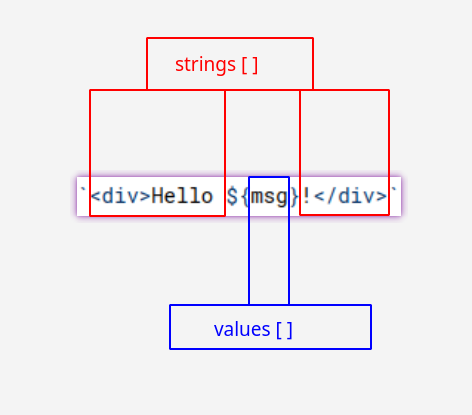@Daniil的答案如果参数是字符串的话效果很好,但是如果它们本身可能是TemplateResults或TemplateResults数组(这些都是规范所允许的),那么它需要一个更复杂的答案: