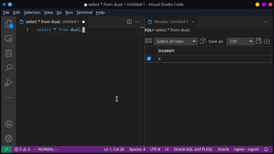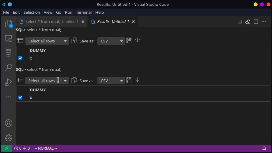 我使用带有扩展Oracle.oracledevtools的vscode来执行SQL。执行命令"Oracle: Execute SQL“会中断编辑器组。示例: