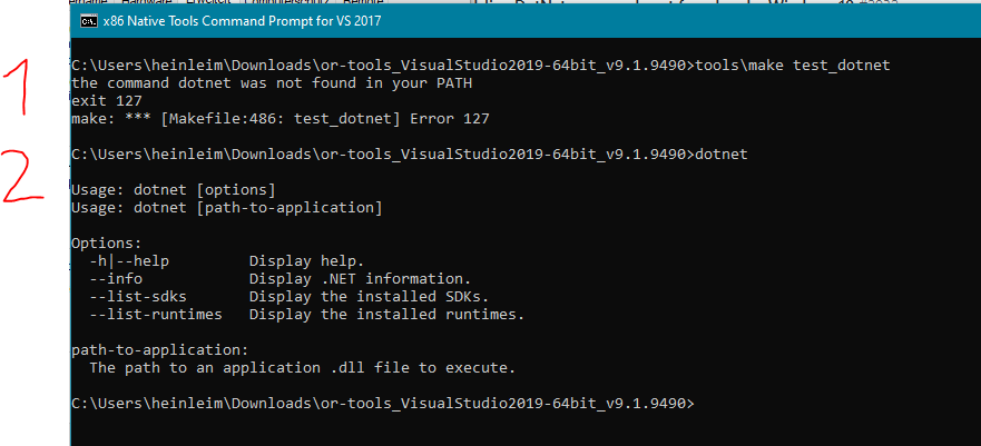 编辑:正如@LaurentPerron所说,make test_dotnet不是必要的,而只是额外的检查。然而,OR-工具实际上似乎不起作用。当我调用LinearSolver.Solver.CreateSolver("SCIP")时,它为类SWIGExceptionHelper提供了一个TypeInitializerException,为DLL提供了一个DllNotFoundException,为google提供了一个DllNotFoundException。