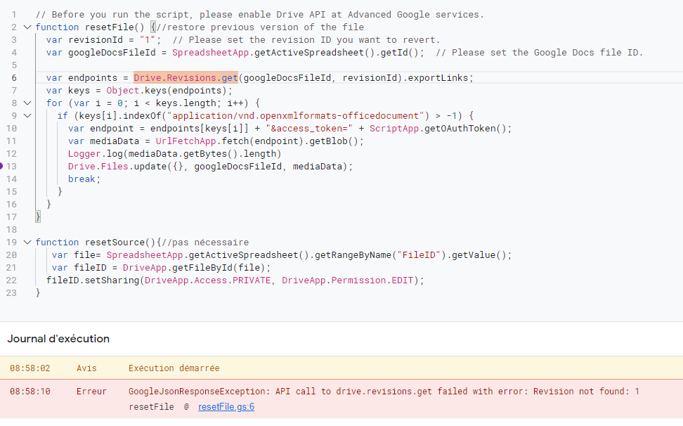 //restore previous version of the file var revisionId = "1"; // Please set the revision ID you want to revert.