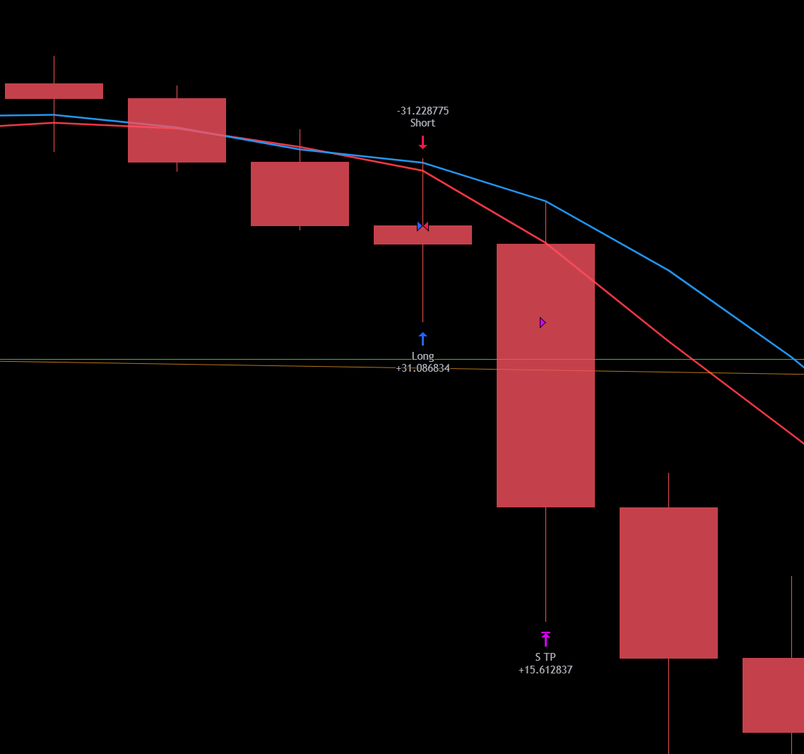 我和松树的剧本学得很开心。我编写了一个简单的策略,它是基于2 MA或EMA与TP的杂交进行日内/剥皮。我用的是0.9或1%的小茶多酚而不是更多