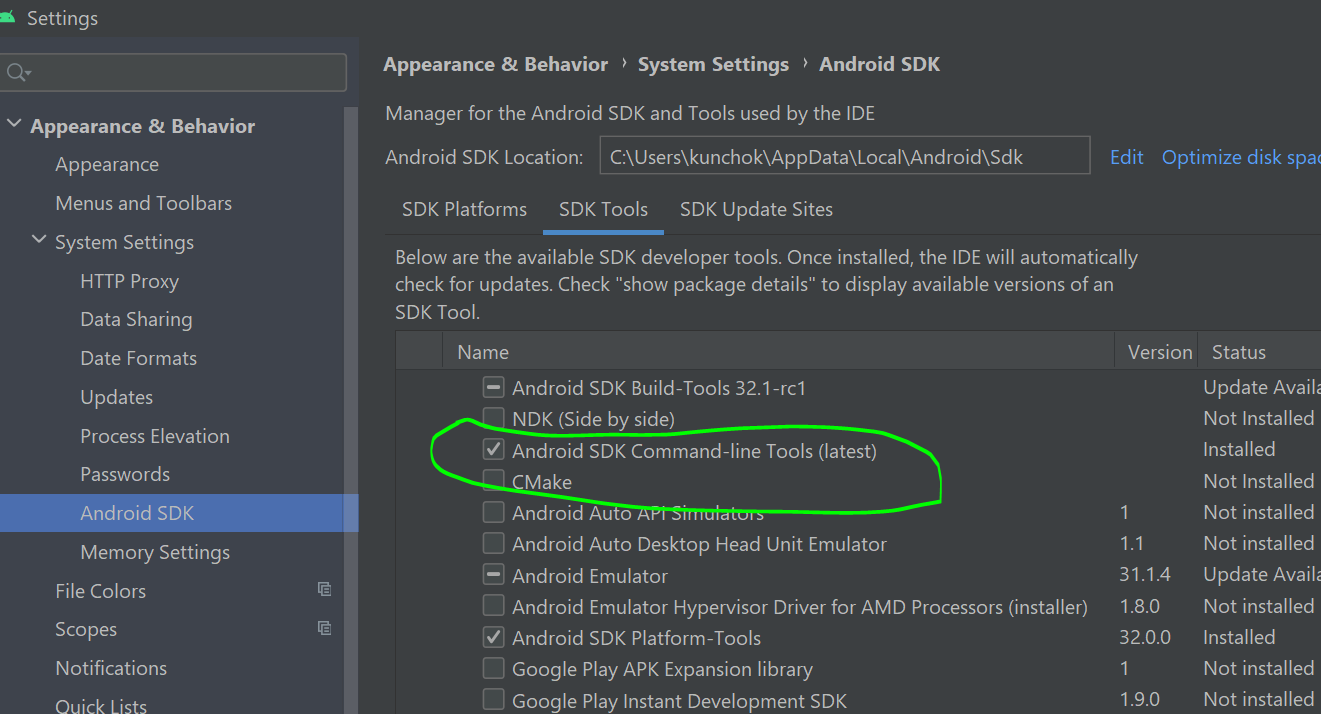 Android Studio Command-line Tools。https://stackoverflow.com/questions/70719767