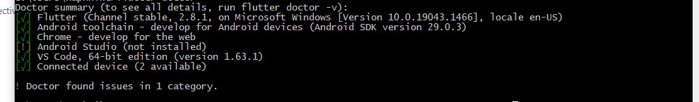 我遵循一个教程来安装一个没有android的android模拟器,并被告知运行命令- flutter doctor。在运行这个的时候,我发现了一个错误-