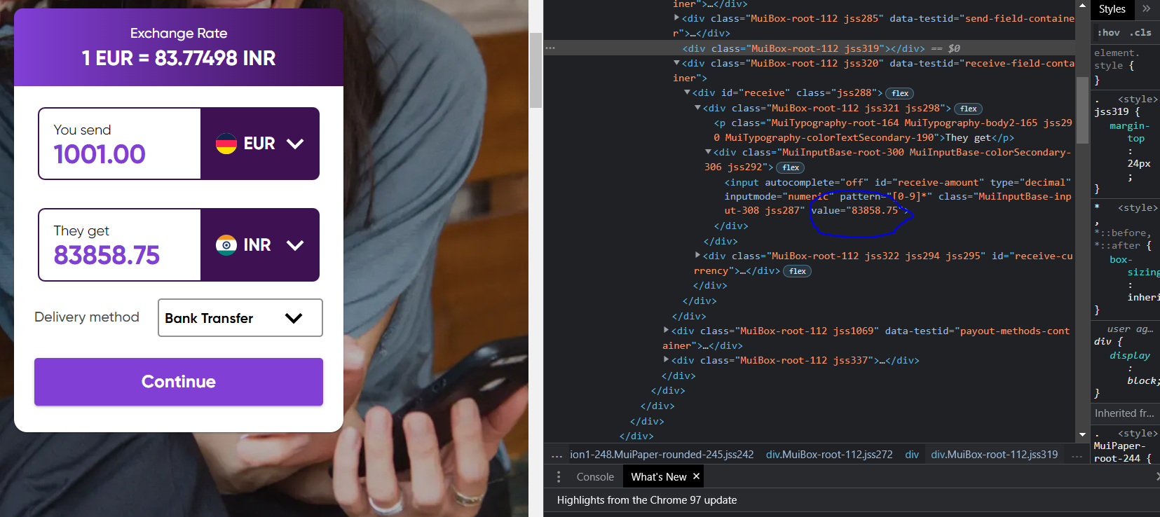URL = "https://www.worldremit.com/en?selectfrom=de&ds_rl=1262314&ds_rl=1262326&ds_rl=1262314&gclid=CjwKCAiA_omPBhBBEiwAcg7smfiUbgpbl_SRSOvS6QqjrqZ9zNFgx22VvTVJrdG0ddnQjeSZ0ve05RoCEskQAvD_BwE&gclsrc=aw.ds&transfer=bnk&selectto=in&amountfrom=100.00¤cyto=inr¤cyfrom=eur"