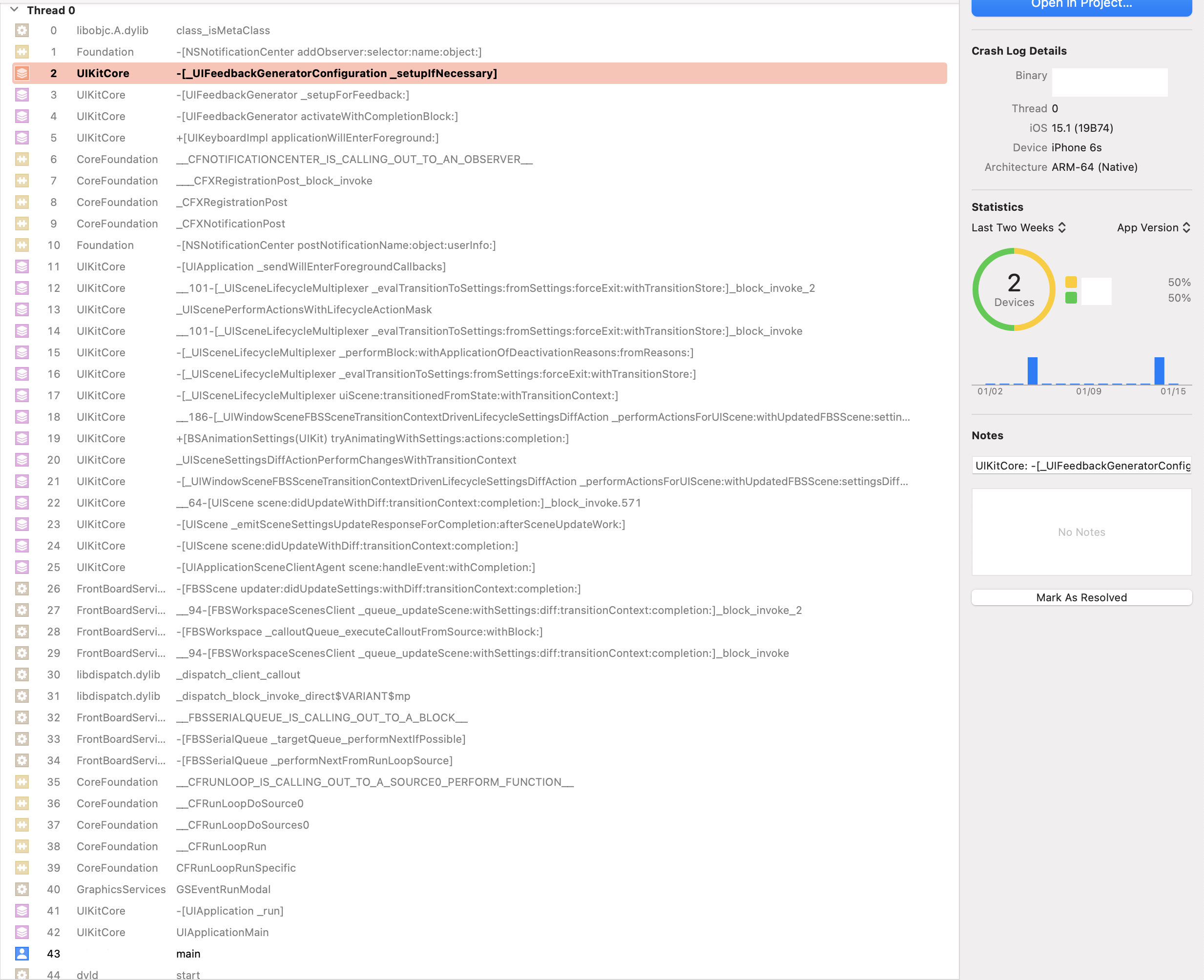2 UIKitCore 0x0000000183499438 -[_UIFeedbackGeneratorConfiguration _setupIfNecessary] + 336 (_UIFeedbackGeneratorConfiguration.m:255)