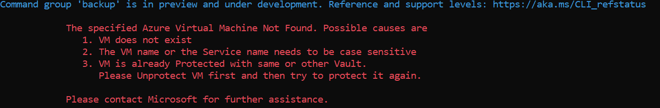 我在西美国创建了VM,在东美国创建了现有恢复服务库。因此,我得到了以下错误: