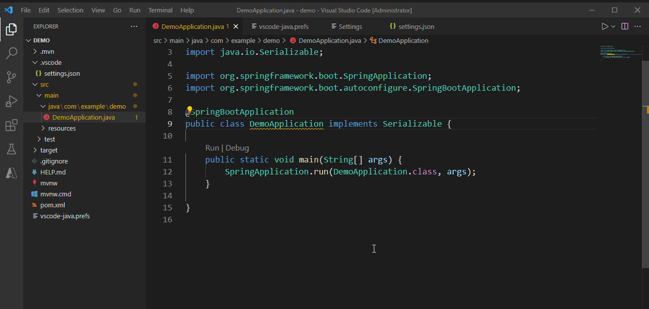 我发现的第一个问题是,在默认情况下,VSCode并不建议实现序列化版本标识。因此,我按照本教程中的步骤来激活该建议。