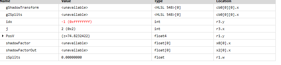 shadowFactor[i] = CalcShadowFactor(PosS, idx);