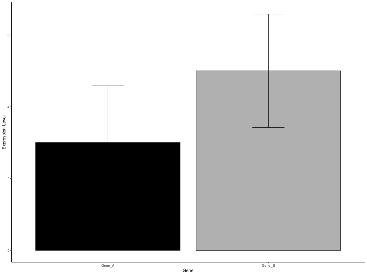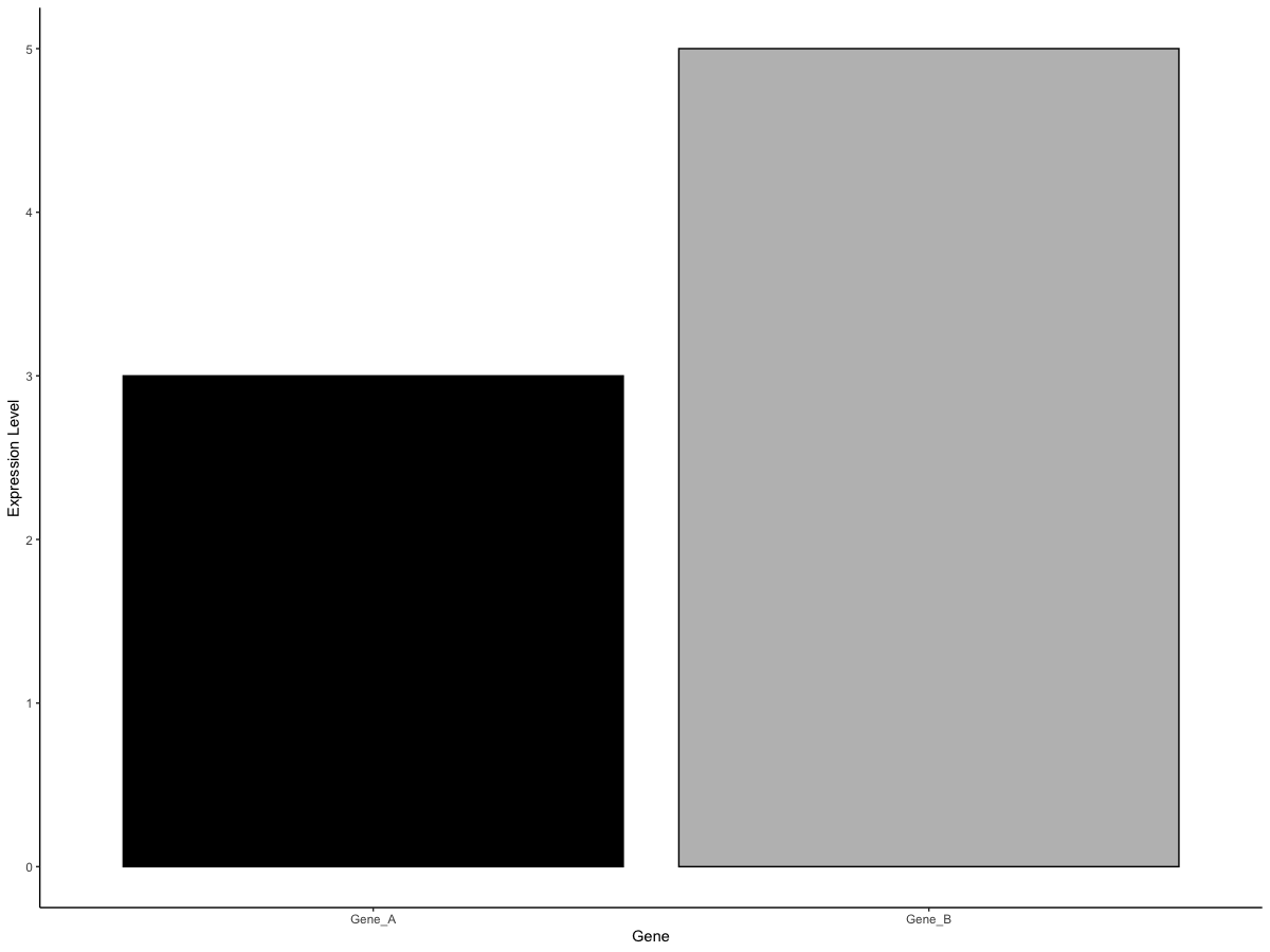 geom_bar(aes(x = "Gene_B", y = Gene_B, colour = "Gene_B"), stat = "summary", fun = "mean", fill=c("grey"), colour="black") +