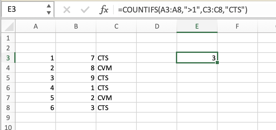=COUNTIFS(H1:H1986 "=cvm", N1:N1986,">=" & B41,N1:N1986, "<=" & C41)H栏是学科(CTS/CVM)的所在地。