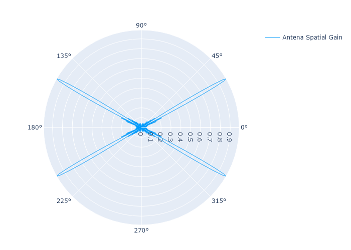 在上面,我们看到天线增益的目标信号来自30 [Deg]和干扰在[20.0; -35.0; 50.0]。
