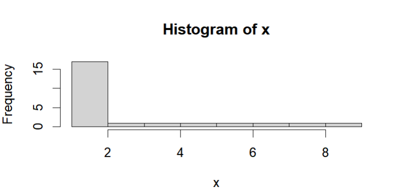 x <- c(1,1,1,1,1,1,1,1,1,1,1,1,2,2,2,2,2,3,4,5,6,7,8,9)