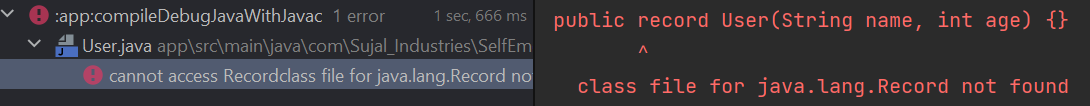 用于第二部分:您正在尝试使用一个记录,这是目前在Android中不支持的。